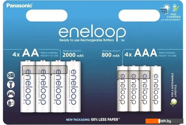 Фотографии, описание и технические характеристики модели Panasonic Eneloop AAA+AA BK-3MCDE+BK-4MCDE/8CP (8шт) взяты из открытых источников, официального сайта производителя или представительства Panasonic в Республике Беларусь.