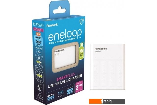 | Информация | ? Зарядное устройство-повербанк Panasonic Eneloop BQ-CC87 - отличный вариант удобного и компактного зарядного устройства с функцией Повербанка, которое позволяет использовать АА и ААА аккумуляторы для подзарядки мобильных устройств: телефонов, планшетов и др. ? Работает от любого USB источника питания, что обеспечивает компактность, удобство и универсальность подключения. Зарядное устройство автоматически определяет полный заряд аккумуляторов и автоматически отключается. ? Быстрая зарядка аккумуляторов (АА 2 ячейки 2,25 часа, 4 ячейки 4,5 часа) ? Индивидуальная зарядка ячеек / Контроль зарядки (Smart charge) ? Напряжение 100 – 240В ? Индикация 4 LED индикатора трех цветов отображают процесс зарядки (красный - менее 20% заряда, желтый - от 20% до 80%, зеленый - более 80%), после окончания зарядки индикаторы выключаются ? Контроль зарядки Smart Charge - "Умный контроллер" напряжения прекращает процесс зарядки до момента наступления избыточного заряда, который сокращает срок службы аккумулятора ? Заряжаемые аккумуляторы AA x 1, 2, 3, 4 / AAA x 1, 2, 3, 4 ячейки ? Продолжительность зарядки АА: примерно 2,25 часа / 4,5 часа (2000 mAh) ААА: примерно 2 часа / 4 часа (800 mAh) ? Размеры (мм) (ШХВХГ) 66 х 85 х 29 мм ? Вес 250,5 гр. |