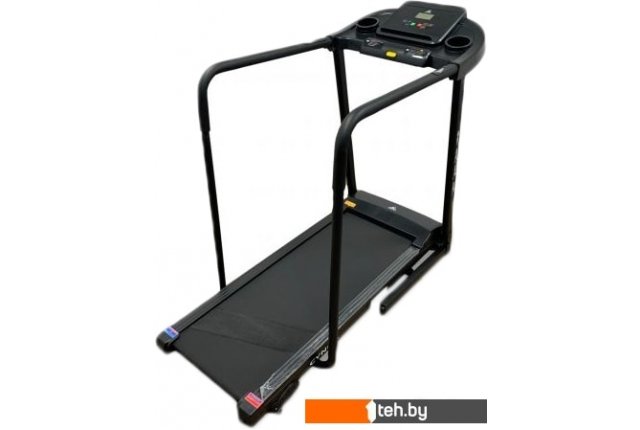 | Особенности | Модель отличается присутствием в комплектации специальных удлинённых поручней для реабилитационных занятий, возможностью регулировки наклона бегового полотна в трёх положениях. |
