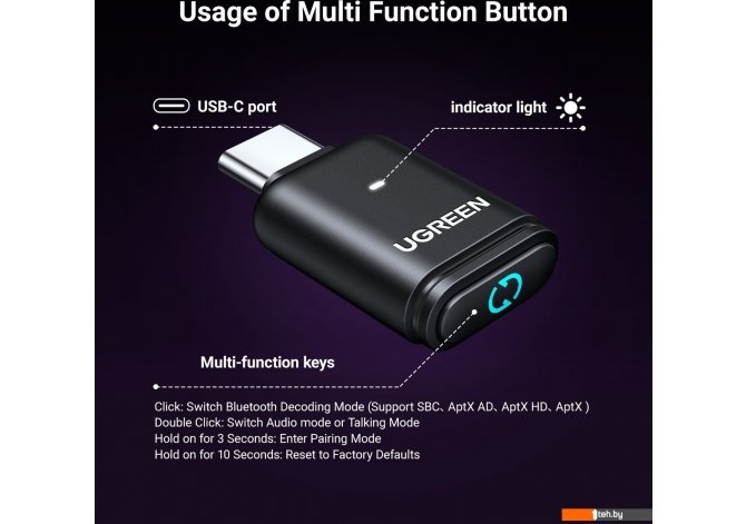 Фотографии, описание и технические характеристики модели беспроводного адаптера Ugreen BT501 45008 взяты из открытых источников, официального сайта производителя или представительства Ugreen в Республике Беларусь.