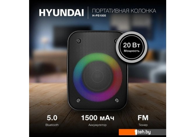 Фотографии, описание и технические характеристики модели портативной колонки Hyundai H-PS1005 взяты из открытых источников, официального сайта производителя или представительства Hyundai в Республике Беларусь.