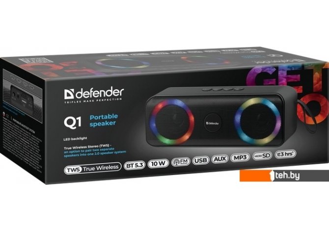 Фотографии, описание и технические характеристики модели портативной колонки Defender Q1 взяты из открытых источников, официального сайта производителя или представительства Defender в Республике Беларусь.