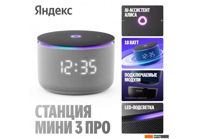 Фотографии, описание и технические характеристики модели портативной колонки Яндекс Станция Мини 3 Про (серый) взяты из открытых источников, официального сайта производителя или представительства Яндекс в Республике Беларусь.
