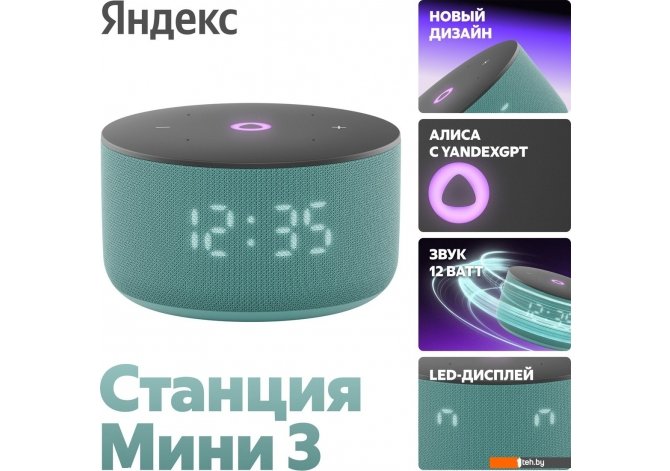 Фотографии, описание и технические характеристики модели портативной колонки Яндекс Станция Мини 3 с часами (бирюзовый) взяты из открытых источников, официального сайта производителя или представительства Яндекс в Республике Беларусь.
