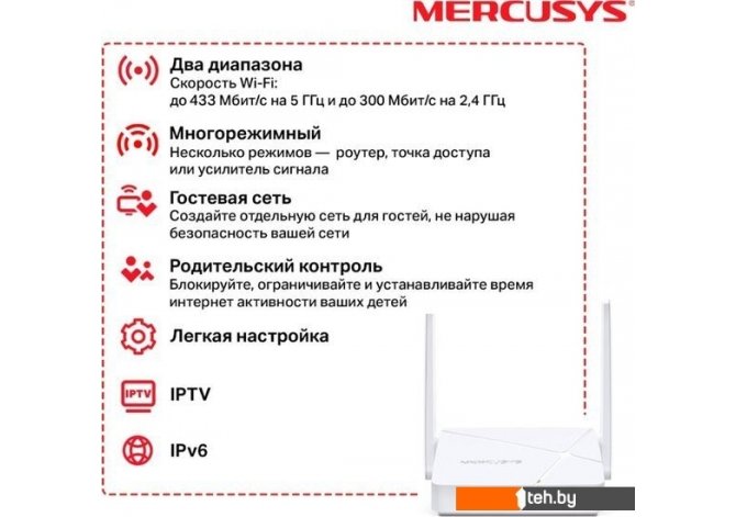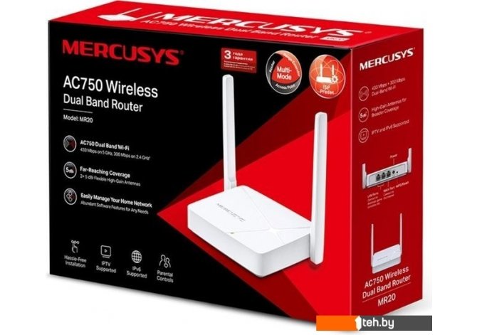 Если хотите купить маршрутизатор Mercusys MR20 то следует уточнить все параметры и габариты модели перед покупкой. Представленые характеристики на сайте 1teh.by могут отличаться от действительных или указанных производителем. Описание, фото товара и технические характеристики представлены для справки.