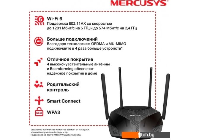 Фотографии, описание и технические характеристики модели сетевого маршрутизатора Mercusys MR70X взяты из открытых источников, официального сайта производителя или представительства Mercusys в Республике Беларусь.
