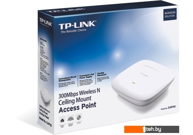 Фотографии, описание и технические характеристики модели беспроводной точки доступа TP-Link EAP110 взяты из открытых источников, официального сайта производителя или представительства TP-Link в Республике Беларусь.