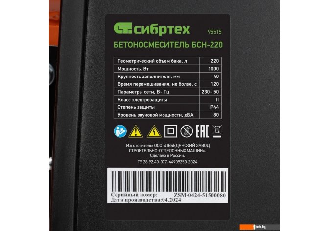 Фотографии, описание и технические характеристики модели бетономешалки СибрТех БСН-220 взяты из открытых источников, официального сайта производителя или представительства СибрТех в Республике Беларусь.