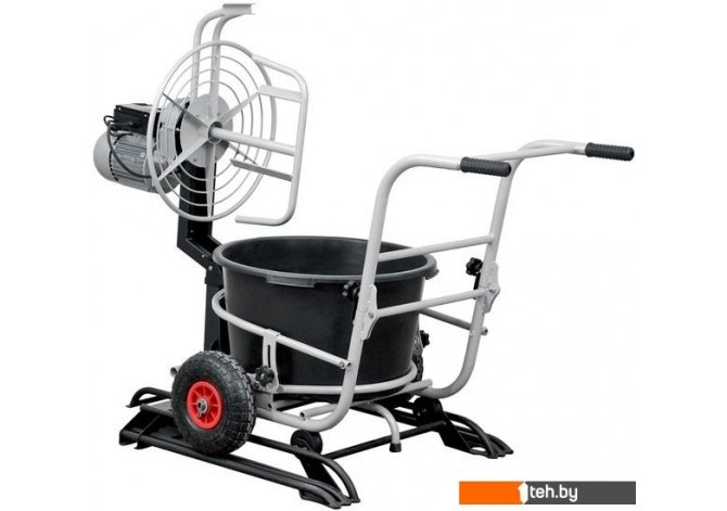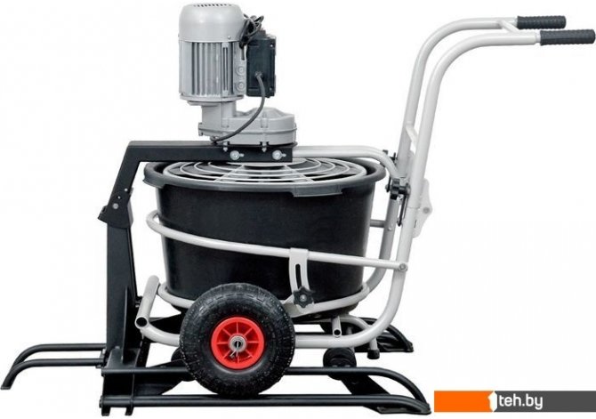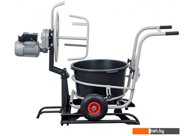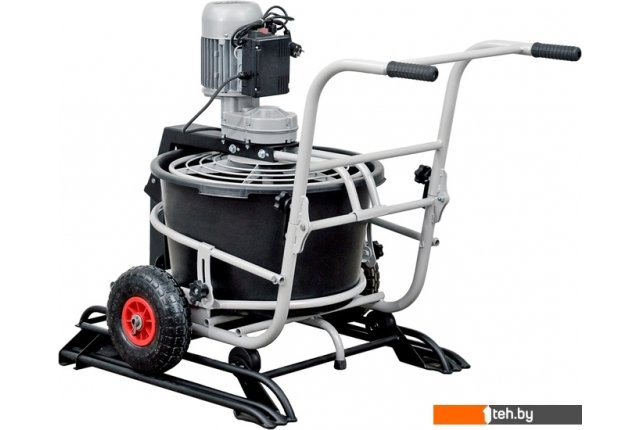 | Информация | Автономный универсальный миксер BELMASH MS-6501 предназначен для замешивания строительных смесей и растворов (цементных смесей плиточного клея, краски, эпоксидного клея и т. п.). Миксер состоит из отдельной станции, тележки с пневматическими колёсами и ёмкости для смешивания. Двигатель асинхронный со встроенным редуктором и защитой от перегрева. Режим работы S1. Он работает на низких оборотах, что позволяет не захватывать воздух при смешивании. В результате получается однородная смесь отличного качества в большом объёме. Отдельная станция с мотор-редуктором – это удобно. Ее можно расположить возле розетки, а готовый раствор перемещать на тележке. При этом не нужно использовать удлинители и делать смесь рядом с рабочим местом, шнур питания не будет мешать, кроме того, перемещается только смесь на тележке – это легче, чем передвигать всю установку. Тележка оборудована пневматическими колёсами, что даёт высокую проходимость и позволяет легко перемещать ёмкость с полной загрузкой по рабочей площадке. Колёса с камерой – 4.10/3.50-4. Точность установки тележки на станцию достигается за счет направляющих роликов и ограничительных захватов. Для безопасности предусмотрено отключение аппарата при подъёме крышки. В поворотном кронштейне двигателя установлен концевой выключатель, который разрывает электрическую цепь при подъёме венчика с не выключенным питанием. Венчик изготовлен из стальной гнутой трубы диаметром 20 мм. Максимальная ширина – 450 мм, высота – 236 мм. Ёмкость в комплекте поставки имеет высоту 340 мм, внутренний диаметр (по верхней части) составляет 550 мм. Диаметр нижней части чаши – не более 470 мм. Объём (max) - 65 литров. Так как крепеж ёмкости регулируемый, то размер её варьируется, поэтому можно использовать ёмкости разных производителей. |