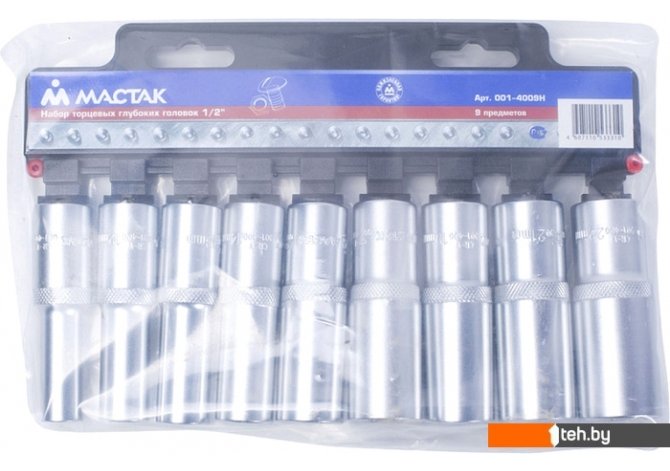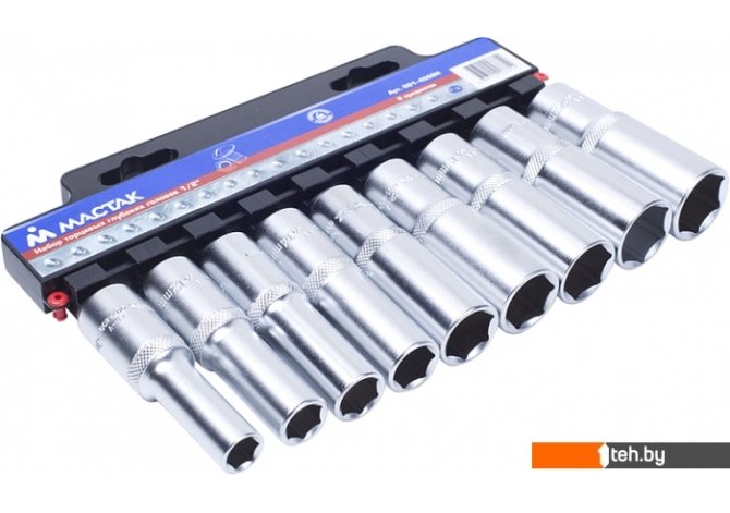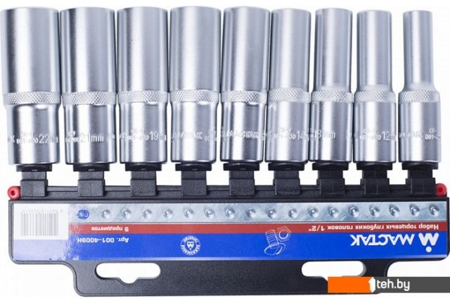 | Комплектация | - 9 головок размером от 10 мм до 22 мм; - Пластиковый держатель. |