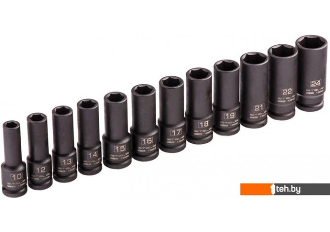 | Комплектация | Набор ударных глубоких шестигранных торцевых головок 1/2": 10-24 мм |
