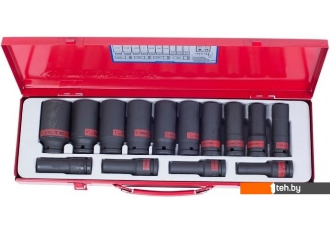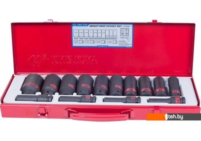 | Комплектация | Удлиненные торцевые головки KING TONY серии 4435S, размеры: 3/8", 7/16", 1/2", 9/16", 5/8", 11/16", 3/4", 13/16", 7/8", 15/16", 1", 1-1/16", 1-1/8", 1-1/4" |