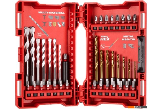 | Комплектация | 3 ? PH2 3 ? PZ2 2 ? TX10 4 ? TX20 3 ? TX30 1 ? 60 mm 1 ? ? 2 mm 1 ? ? 3,5 mm 1 ? ? 4,5 mm 1 ? ? 6 mm 1 ? ? 10 mm 2 ? ? 6 mm 1 ? ? 4 mm 1 ? PH1 1 ? PZ1 1 ? PZ3 2 ? TX15 3 ? TX25 RED HEX SHOCKWAVE™ HSS-TIN KOVOV? VRT?KY – 8 KS 1 ? ? 3 mm 1 ? ? 4 mm 2 ? ? 5 mm SHOCKWAVE™ VRT?KY DO MULTIMATERI?LU – 7 KS 2 ? ? 8 mm 1 ? ? 5 mm |