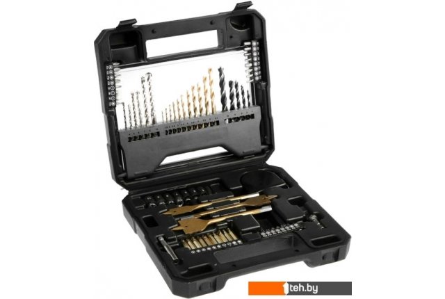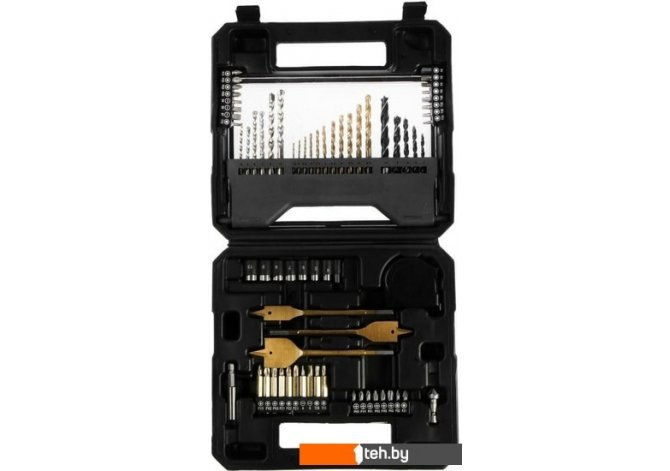 | Комплектация | Биты 25 мм, 24 шт - PH0-1-1-2-2-3, PZ0-1-1-2-2-3, SL4-6-7, T10-15-20-25-40, H3-4-5-5. Биты 50 мм, 10 шт - PH1-2-3, PZ1-2-3, SL4-6, T20-25. Головки торцевые 7 шт - 4, 5, 6, 7, 8, 9, 10 мм. Адаптер для торцевых головок 1 шт. Адаптер для бит 60 мм - 1 шт. Перовые сверла 3 шт - 16, 22, 32 мм. Сверла по бетону 6 шт - 4, 5, 6, 7, 8, 10 мм. Сверла по металлу 11 шт - 1.5, 2, 2.5, 3, 3.5, 4. 4.5, 5, 5.5, 6, 6.5 мм. Сверла по дереву 5 шт - 4, 5, 6, 8, 10 мм. Зенкер - 1 шт. Рулетка 3 м, - 1 шт. |