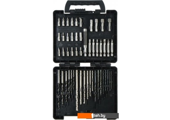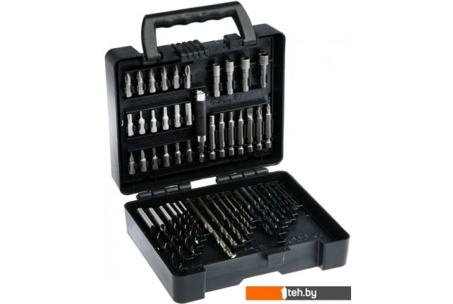 | Комплектация | Сверла по металлу 8 шт - 2, 2.5, 3, 3.5, 4, 4.5, 5, 6 мм. Сверла по дереву 6 шт - 3, 4, 5, 6, 7, 8 мм. Сверла по бетону 6 шт - 3.5, 4, 5, 6, 7, 8 мм. Биты 25 мм, 18 шт - PH1-2-2-2-2-3, SL4-6, T10-15-20-25-30, H2-3-4-5-6. Биты 50 мм, 7 шт - PH1-2, SL4-6, H3-4-5. Биты с торцевой головкой 35 мм, 4 шт - 5, 6, 7, 8 мм. Адаптер для бит 80 мм - 1 шт. |