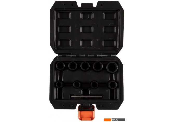 | Комплектация | – Головки для поврежденного крепежа 3/8", L=32 мм – 10, 11, 12, 13, 14, 15, 16, 17, 19 (L=34 мм) мм – Выколотка 75 мм |