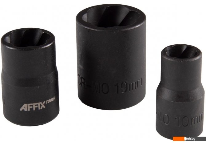 | Информация | - Набор головок для поврежденных гаек и болтов, размеры 10-19 мм. - Идеально подходит для демонтажа гаек или болтов с поврежденными гранями. - Пожалуйста, не используйте этот инструмент с пневматическим или электрическим гайковёртом, а также другими инструментами или методами с ударной нагрузкой. |