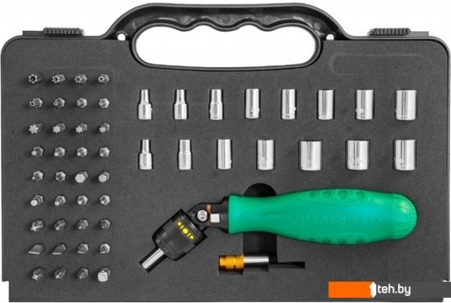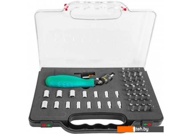 | Комплектация | - Гибкая отверточная рукоятка с храповым механизмом и реверсом;- Вставки-биты 25 мм.:- PZ: #0, #1, #2, #3;- PH: #1, #2, #3;- SL: 3, 4, 5.5, 7 мм.;- TORX: T6,T8,T9,T10,T15,T20,T25,T30,T40;- T/TORX: T8,T10,T15,T20,T25,T27,T30,T40;- HEX: 2, 2.5, 3, 4, 5, 6 мм.;-Головки торцевые 1/4"DR, 15 шт.: 5,5.5,6,7,8,9,10,11,12,13 мм., 3/16",1/4",5/16",3/8",1/2";- Держатель для бит магнитный;- Пластиковый бокс. |