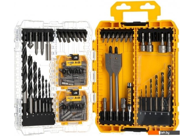 | Комплектация | Биты 25 мм (1xPH1, 2xPH2, 1xPH3, 1xPZ1, 2xPZ2, 1xPZ3, 1xT10, 2xT15, 30xT20, 30xT25, 2xT30, 1xT40) - 74 шт. Биты 50 мм (1xPH2, 1хPZ2) - 2 шт. Сверла по дереву (3 мм, 4 мм, 5 мм, 6 мм, 8 мм, 10 мм, 12 мм) - 7 шт. Перьевые сверла по дереву (22 мм, 25 мм) - 2 шт. Сверла по металлу (2 мм, 3 мм, 4 мм, 5 мм, 6 мм, 8 мм) - 6 шт. Торцевые головки (6 мм, 8 мм, 10 мм, 13 мм) - 4 шт. Зенкер - 1 шт. Адаптер c HEX на Sq 1/4" - 1 шт. Адаптер c HEX на Sq 3/8" - 1 шт. Магнитный держатель бит - 2 шт. Мини-кейс для бит - 2 шт. Кейс - 1 шт. |