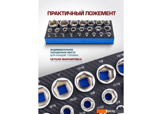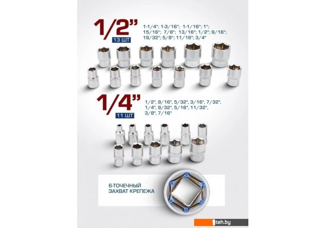 | Размер в дюймах | 1", 1/2", 1/4", 11/16", 11/32", 13/16", 15/16", 19/32", 3/16", 3/4", 3/8", 5/16", 5/32", 5/8", 7/16", 7/32", 7/8", 9/16", 9/32" |