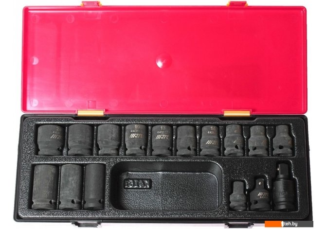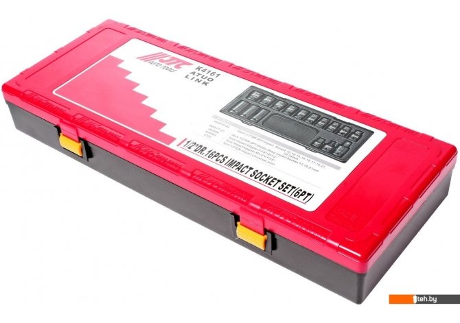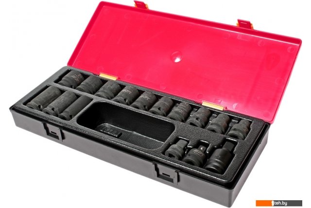 | Комплектация | - 1/2" DR.6PT ударная головка: 10 мм., 12 мм., 13 мм., 14 мм., 15 мм., 17 мм., 19 мм., 21 мм., 22 мм., 24 мм. - 10 шт. - 1/2" DR.6PT ударные глубокие головки: 17 мм., 19 мм., 21 мм. - 3 шт. - ударный адаптер F3/8"XM1/2" - 1 шт. - ударный адаптер М1/2"хF3/8" - 1 шт. - 1/2 "DR. ударный универсальный шарнир - 1 шт. |