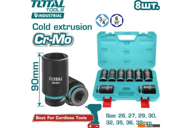 | Комплектация | Торцевая головка 3/4'' (26, 27, 29, 30, 32, 35, 36, 38 мм) - 8 шт. Пластиковый кейс - 1 шт. |