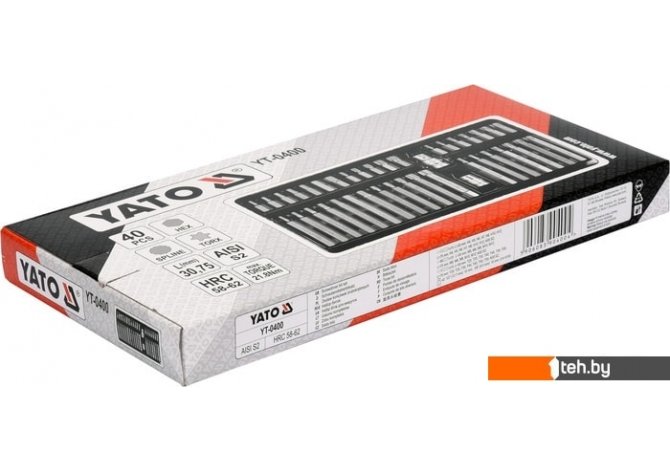 Фотографии, описание и технические характеристики модели Yato YT-0400 (40 предметов) взяты из открытых источников, официального сайта производителя или представительства Yato в Республике Беларусь.