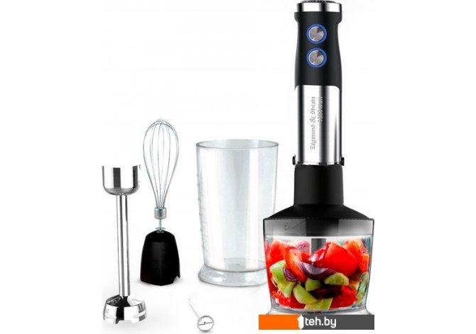 | Информация | ? Погружной блендер Zigmund & Shtain BH-346 M - это универсальный кухонный прибор, который заменяет несколько других приборов и экономит место на кухне. ? В комплекте идут съемная насадка-блендер, нож-измельчитель, венчик и насадка-капучинатор для быстрой и качественной обработки продуктов. ? Благодаря высокой мощности и наличию 12 скоростей и Турборежиму, обработка продуктов занимает считанные секунды. |