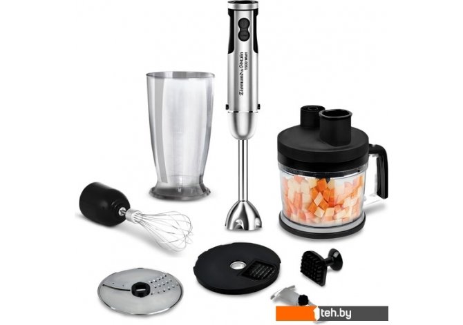 | Информация | ? Погружной блендер Zigmund & Shtain BH-347 M - это универсальный помощник на кухне, объединяющий функции блендера, измельчителя, миксера и мультирезки. ? В комплекте имеется широкий выбор насадок, терок и шинковок для быстрой и качественной обработки различных продуктов. ? Специальная насадка позволяет резать ингредиенты кубиками для различных салатов или для приготовления супов и жарки. ? Мощность 1500 Вт обеспечивает высокую скорость и качество обработки продуктов. ? Благодаря 12 скоростям с плавной регулировкой и режиму "Турбо" вы можете легко настроить прибор под нужные задачи. ? Расширенная комплектация 6 в 1 и увеличенный объем чаши (2 л) позволяют обрабатывать большие объемы продуктов. ? Антискользящая накладка на днище чаши обеспечивает устойчивость во время работы. ? В комплекте также имеется очиститель для насадок и толкатель. ? Простота в уходе: насадки и аксессуары могут быть помещены в посудомоечную машину. ? DC-двигатель с пониженным уровнем шума обеспечивает тихую работу. ? LED-подсветка обеспечивает удобство в использовании. ? Кнопочная система крепления насадок обеспечивает надежную фиксацию. ? Насадки из высококачественной нержавеющей стали SS 304, лезвия из нержавеющей стали SS 301. ? Прорезиненное покрытие корпуса Soft Touch предотвращает скольжение. ? Чаша для измельчения изготовлена из высококачественного ABS-пластика (0% BPA), обеспечивая безопасность в использовании. |