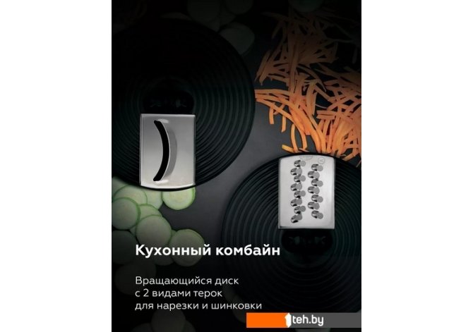 | Комплектация | - блендер - насадка-блендер - насадка-венчик - мерный стакан - чаша измельчителя с крышкой - кухонный комбайн - терка для шинковки - терка для нарезки - толкатель - руководство по эксплуатации - гарантийный талон |