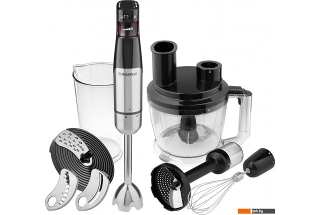| Комплектация | Блок мотора Насадка для измельчения Насадка для картофельного пюре Венчик Стакан блендера с мерной шкалой Чаша измельчителя Нож для мелкой шинковки Нож для средней шинковки Нож для крупной шинковки |