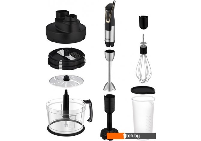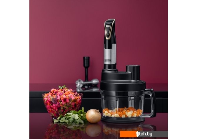 ? В комплекте с блендером идут насадки для нарезки кубиками, измельчения, пюре и взбивания, что позволит вам готовить разнообразные блюда.