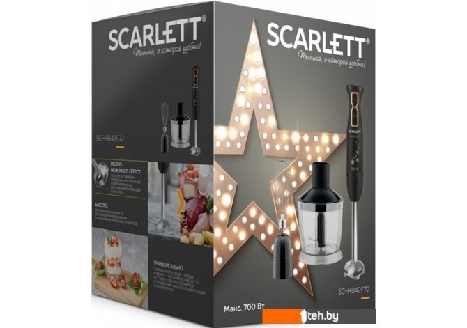 Фотографии, описание и технические характеристики модели блендера Scarlett SC-HB42F72 взяты из открытых источников, официального сайта производителя или представительства Scarlett в Республике Беларусь.