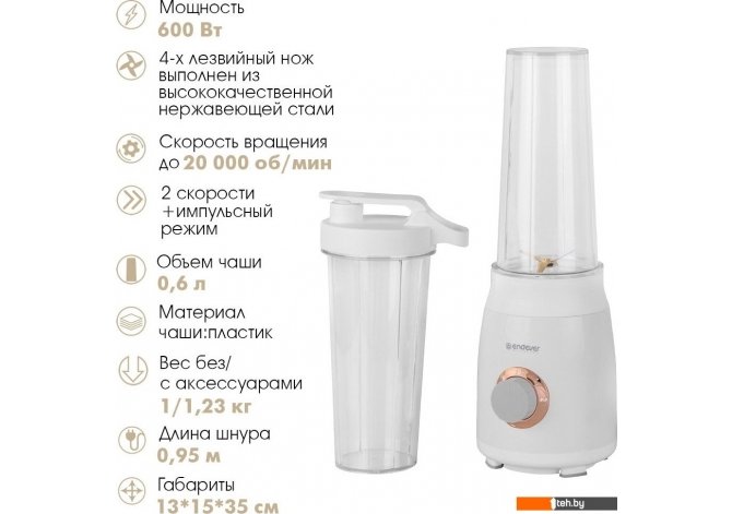 Если хотите купить блендер Endever Sigma-205 то следует уточнить все параметры и габариты модели перед покупкой. Представленые характеристики на сайте 1teh.by могут отличаться от действительных или указанных производителем. Описание, фото товара и технические характеристики представлены для справки.