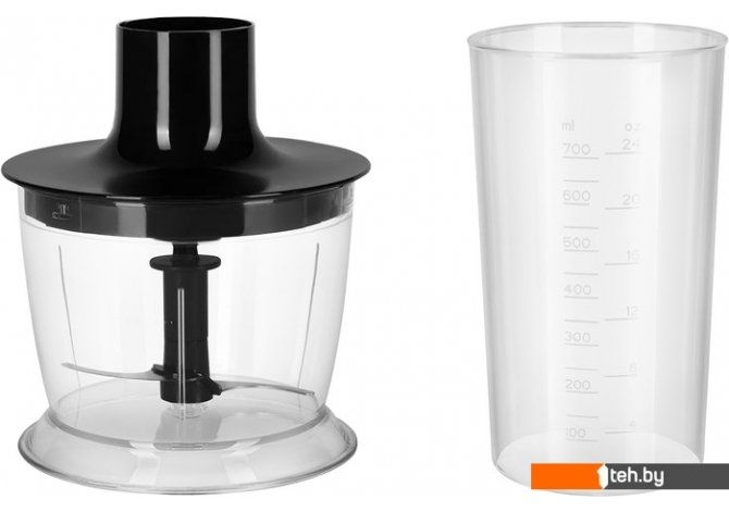 | Комплектация | - блок электродвигателя; - чаша измельчителя с крышкой; - стакан для смешивания; - насадка-блендер; - насадка-венчик; - переходник для насадки-венчика; - S-образный нож; - руководство по эксплуатации; - сервисная книжка. |