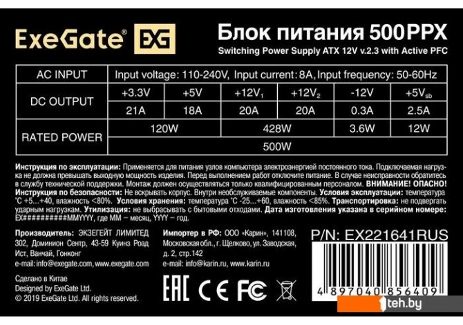 Фотографии, описание и технические характеристики модели блока питания ExeGate 500PPX EX221641RUS взяты из открытых источников, официального сайта производителя или представительства ExeGate в Республике Беларусь.