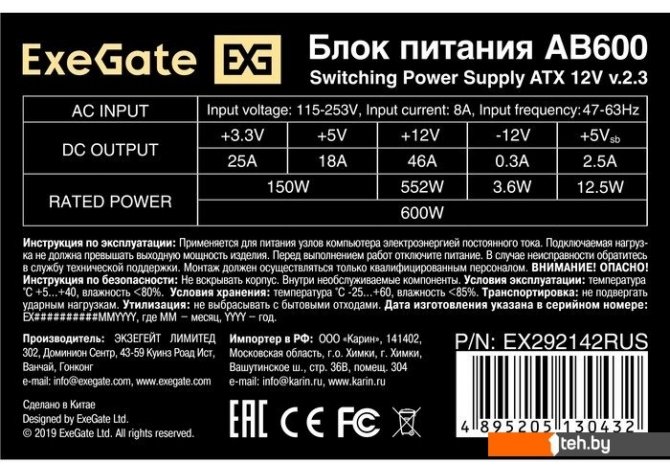 Фотографии, описание и технические характеристики модели блока питания ExeGate AB600 EX292142RUS взяты из открытых источников, официального сайта производителя или представительства ExeGate в Республике Беларусь.
