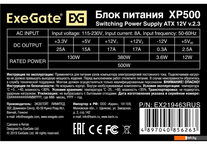 Фотографии, описание и технические характеристики модели блока питания ExeGate ATX-XP500 взяты из открытых источников, официального сайта производителя или представительства ExeGate в Республике Беларусь.