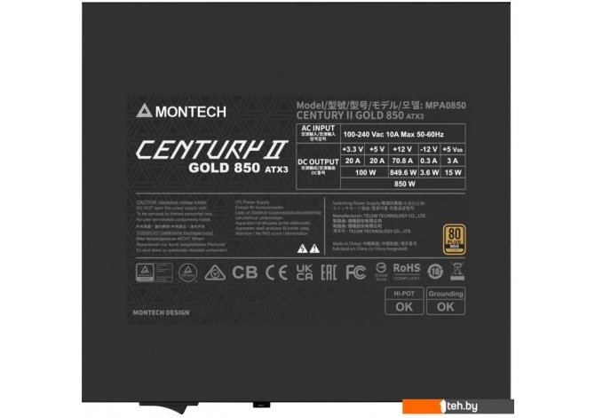 Фотографии, описание и технические характеристики модели блока питания Montech Century II 850W взяты из открытых источников, официального сайта производителя или представительства Montech в Республике Беларусь.