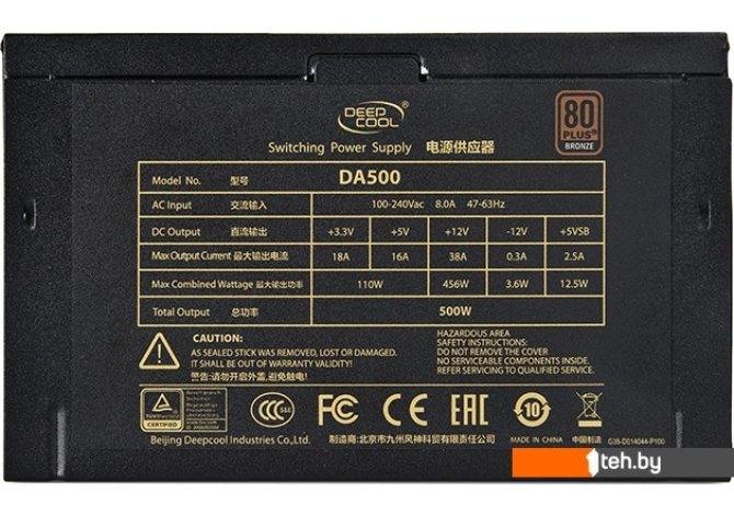 Фотографии, описание и технические характеристики модели блока питания DeepCool DA500 [DP-BZ-DA500N] взяты из открытых источников, официального сайта производителя или представительства DeepCool в Республике Беларусь.