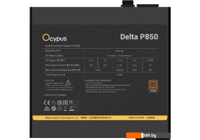 Фотографии, описание и технические характеристики модели блока питания Ocypus Delta P850 Delta-P850-B1FDBK024X-EU взяты из открытых источников, официального сайта производителя или представительства Ocypus в Республике Беларусь.