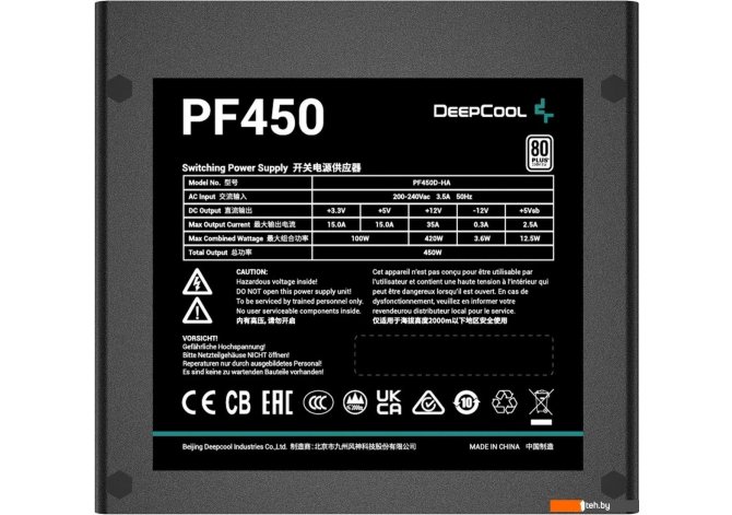 Фотографии, описание и технические характеристики модели блока питания DeepCool PF450 V2 взяты из открытых источников, официального сайта производителя или представительства DeepCool в Республике Беларусь.