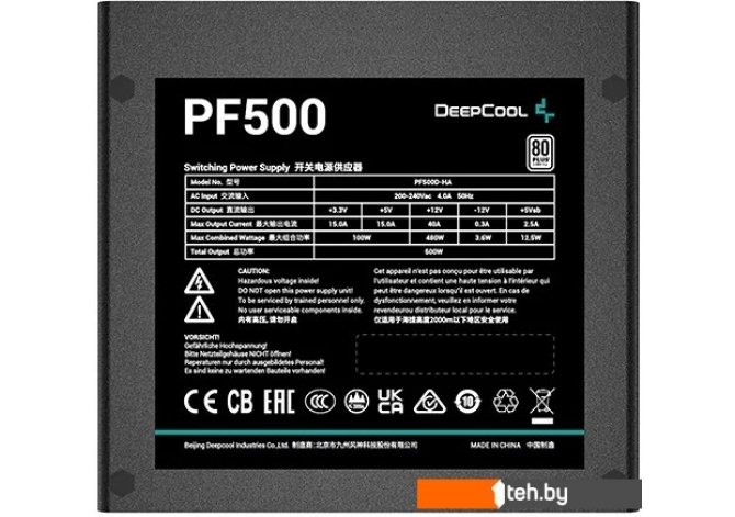Фотографии, описание и технические характеристики модели блока питания DeepCool PF500 взяты из открытых источников, официального сайта производителя или представительства DeepCool в Республике Беларусь.