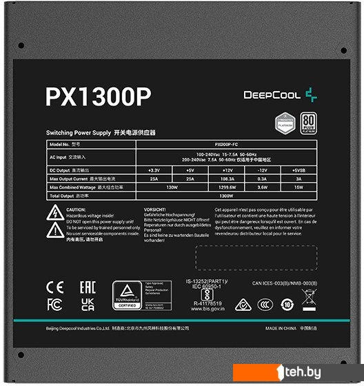 Фотографии, описание и технические характеристики модели блока питания DeepCool PX1300P взяты из открытых источников, официального сайта производителя или представительства DeepCool в Республике Беларусь.