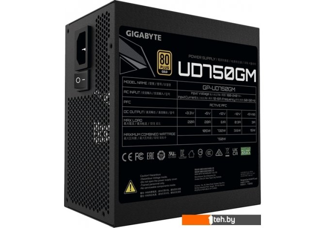 Фотографии, описание и технические характеристики модели блока питания Gigabyte UD750GM взяты из открытых источников, официального сайта производителя или представительства Gigabyte в Республике Беларусь.