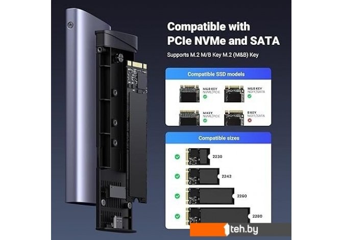| Информация | -Внешний бокс UGREEN CM767 предназначен для подключения твердотельных накопителей формата M.2 NVMe и M.2 SATA к компьютеру или ноутбуку через современный порт USB Type-C. Благодаря поддержке интерфейса USB 3.2 Gen2 обеспечивается высокая скорость передачи данных до 10 Гбит/с, что идеально подходит для быстрой работы с большими файлами, резервного копирования и расширения памяти. -Корпус устройства выполнен из прочного алюминия, который не только гарантирует надежную защиту накопителя, но и способствует эффективному пассивному охлаждению. Компактные размеры бокса позволяют брать его с собой в поездки и использовать в любом месте, где потребуется доступ к данным. -UGREEN CM767 совместим с большинством популярных размеров M.2 SSD (2230, 2242, 2260, 2280), что делает его универсальным решением для различных задач. Установка накопителя не требует специальных навыков и инструментов, а комплект поставки включает все необходимое для быстрой и легкой сборки. -Бокс поддерживает работу только с одним накопителем и не требует дополнительного питания, получая энергию через подключение к USB-порту. Современный дизайн, универсальность и высокая производительность делают его отличным выбором для пользователей, ценящих скорость, удобство и надежность. |