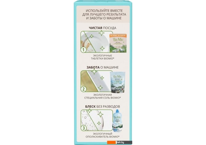 | Информация | Экологичные многофункциональные таблетки на 92% состоят из натуральных компонентов. Содержат функции соли и ополаскивателя в одной таблетке._x000D_ Продлевают срок службы машины. Удаляют до 99% бактерий кишечных инфекций: от кишечной палочки до сальмонеллы. Нейтрализуют запахи благодаря инновационной технологии. Безопасны для детской посуды, бутылочек. Биоразлагаемы, безопасны для септиков._x000D_ Состав: 15–30 % кислородный отбеливающий агент, ?5 % Поликарбоксилаты, Циклодекстрины, Неионогенные ПАВ, Энзимы, Эфирное масло эвкалипта, Лимонен. |