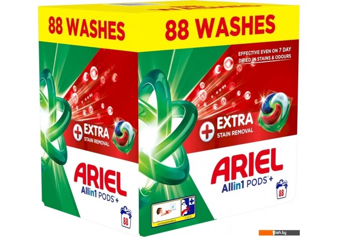 Фотографии, описание и технические характеристики модели Ariel Pods+ All in 1 Extra Stain Removal (88 шт) взяты из открытых источников, официального сайта производителя или представительства Ariel в Республике Беларусь.