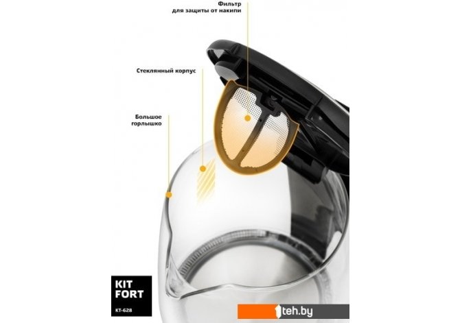 Фотографии, описание и технические характеристики модели чайника Kitfort KT-628 взяты из открытых источников, официального сайта производителя или представительства Kitfort в Республике Беларусь.