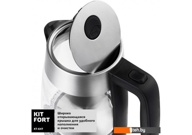 Фотографии, описание и технические характеристики модели чайника Kitfort KT-647 взяты из открытых источников, официального сайта производителя или представительства Kitfort в Республике Беларусь.